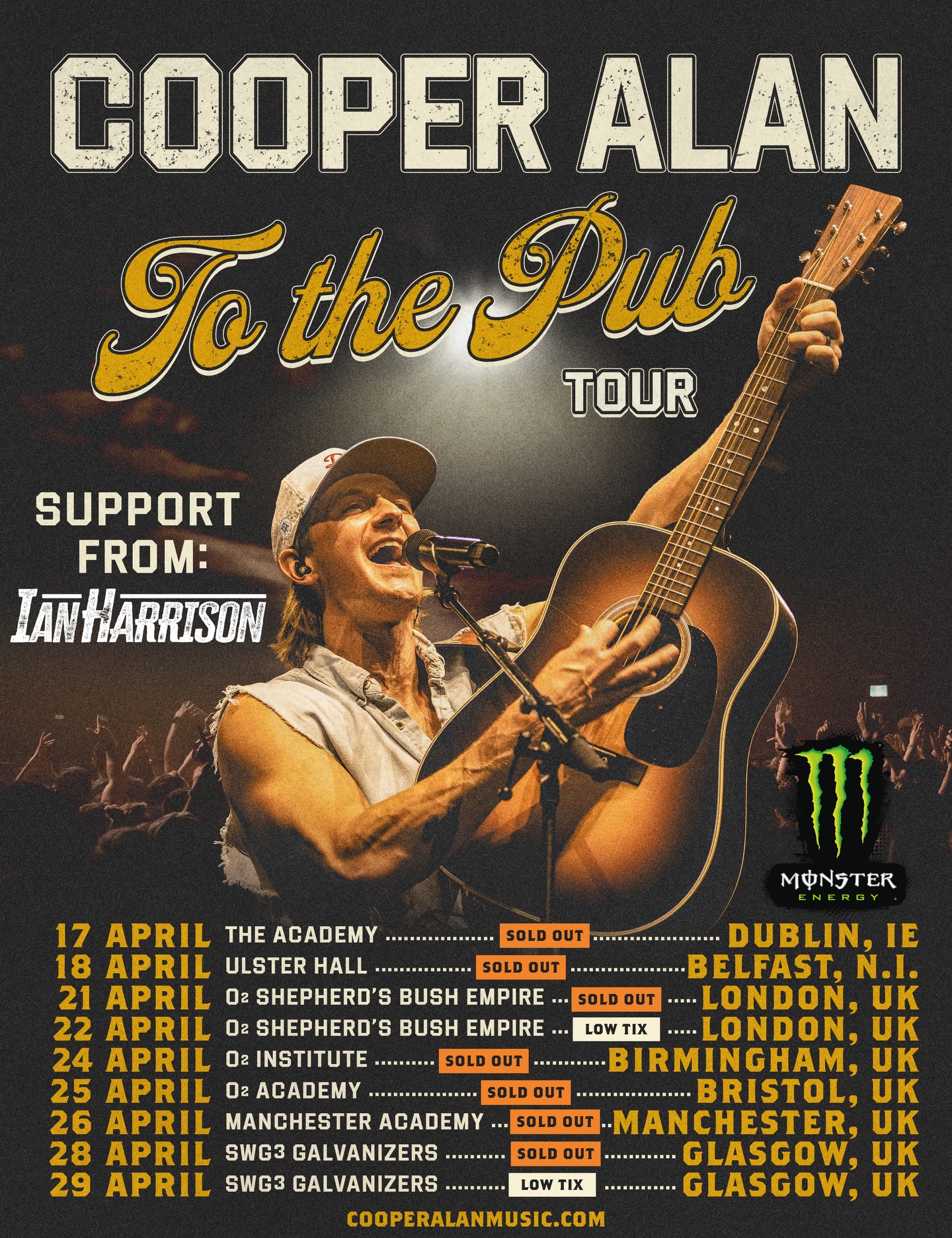 Cooper Alan brings his high‑energy “To The Pub” UK Tour to fans in spring 2026, with dates across Dublin, Belfast, London, Birmingham, Bristol, Manchester, and Glasgow. Following the release of his debut album Winston‑Salem, Alan promises nights of rowdy sing‑alongs, heartfelt storytelling, and the kind of pub‑ready atmosphere that UK country fans have been waiting for.